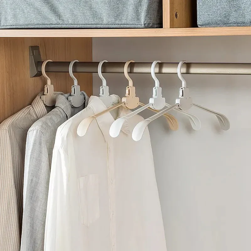 Revolutionary folding hangers that save 3x more space than traditional hangers! Features 360° rotating hooks and non-slip shoulders to keep clothes in place. Perfect for closets, suitcases, and dorm rooms.