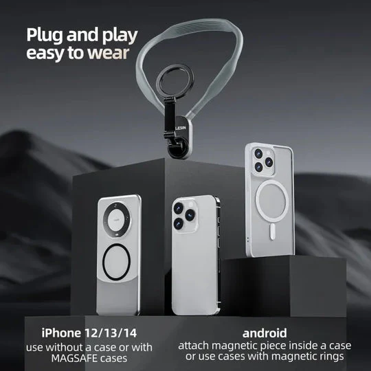Compatible with iPhone 12 and above 📲 with MAGSAFE or Android phones using the included magnetic sheet 🧲.
