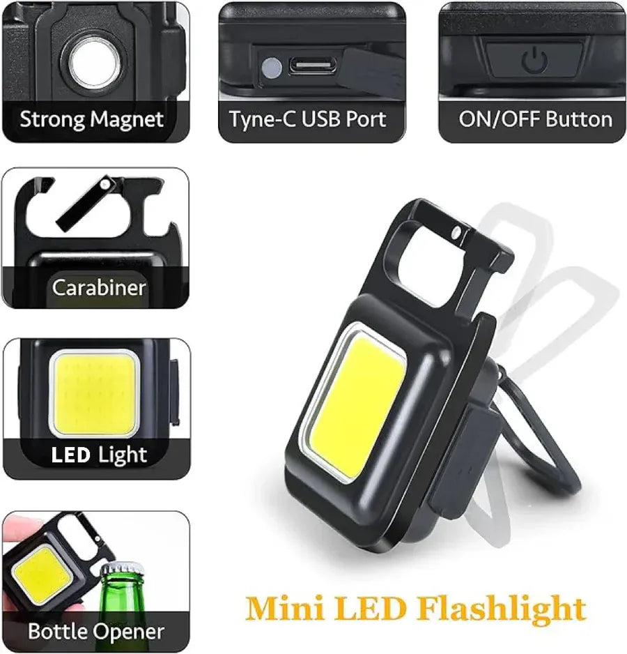 [Bright Flashlight Powerful) The COB keychain flashlight uses a powerful LED to provide 800 lumens of illumination while maintaining a portable size and minimalist design. This USB rechargeable flashlight is powered by a built-in high-capacity rechargeable battery.