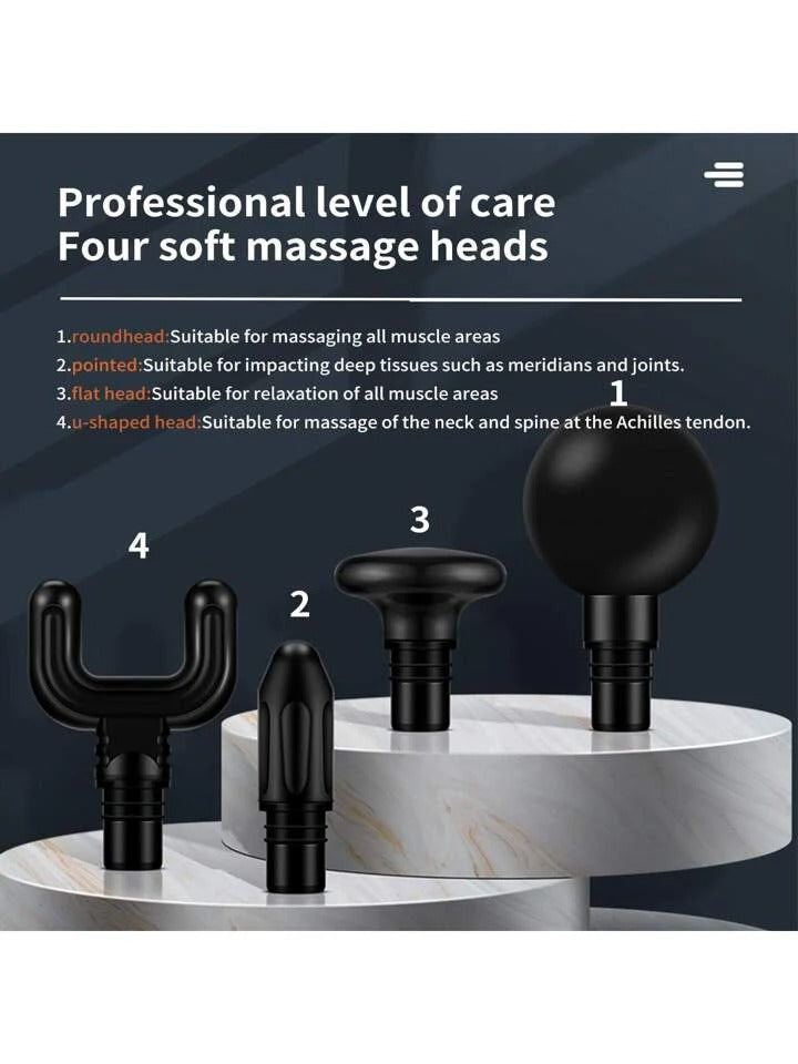 Rechargeable Mini Muscle Massage Gun With 6 Gears And 4 Massage Heads